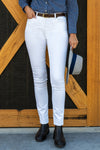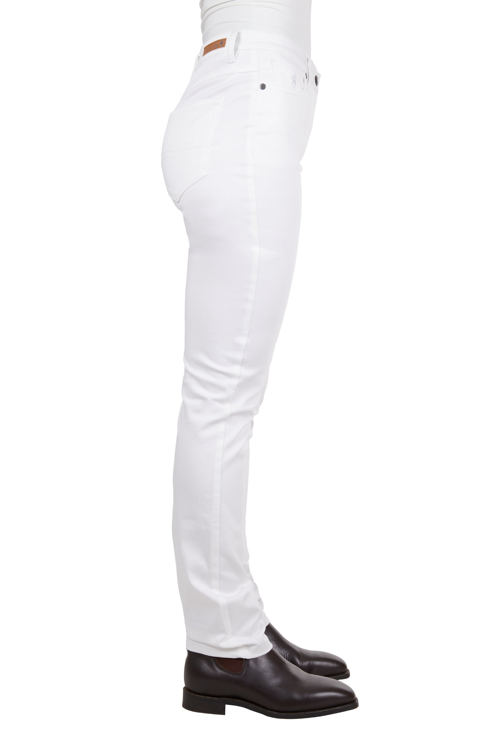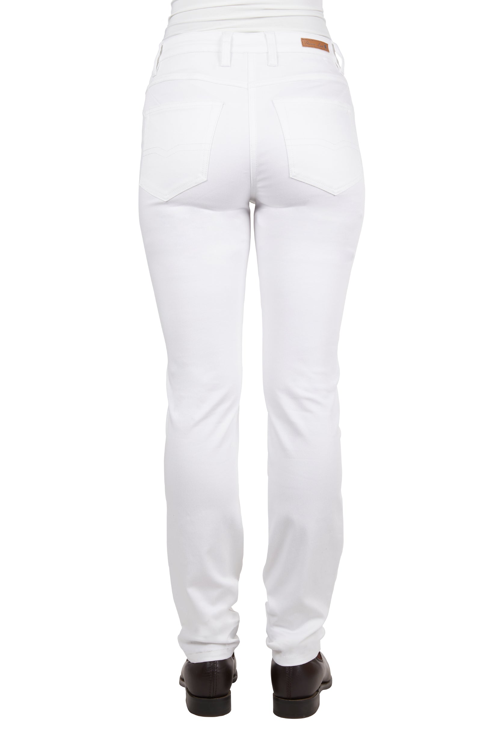 Stretch for comfort and movement, slimmer leg fit, no-gap elastic waistband, secret hidden panel flattens your tummy to give you a slimmer silhouette, clever seaming to sculpt and lift your bottom, rust proof metal accessories, YKK zipper.