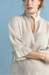 Introducing the ultimate day to night dress. As you emerge from the turquoise waters of Positano, layer the Palazzo Dress over your swimwear,  slip on some sandals and you’re ready for a summer  lunch. The fluted neckline and cuff elevate this European linen dress from the everyday. The relaxed silhouette through the body is extremely flattering on all who wear it.