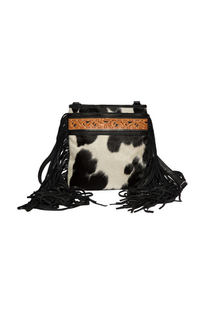 Hand Painted Tooling Leather Medium Sling Cowhide Bag With Fringes