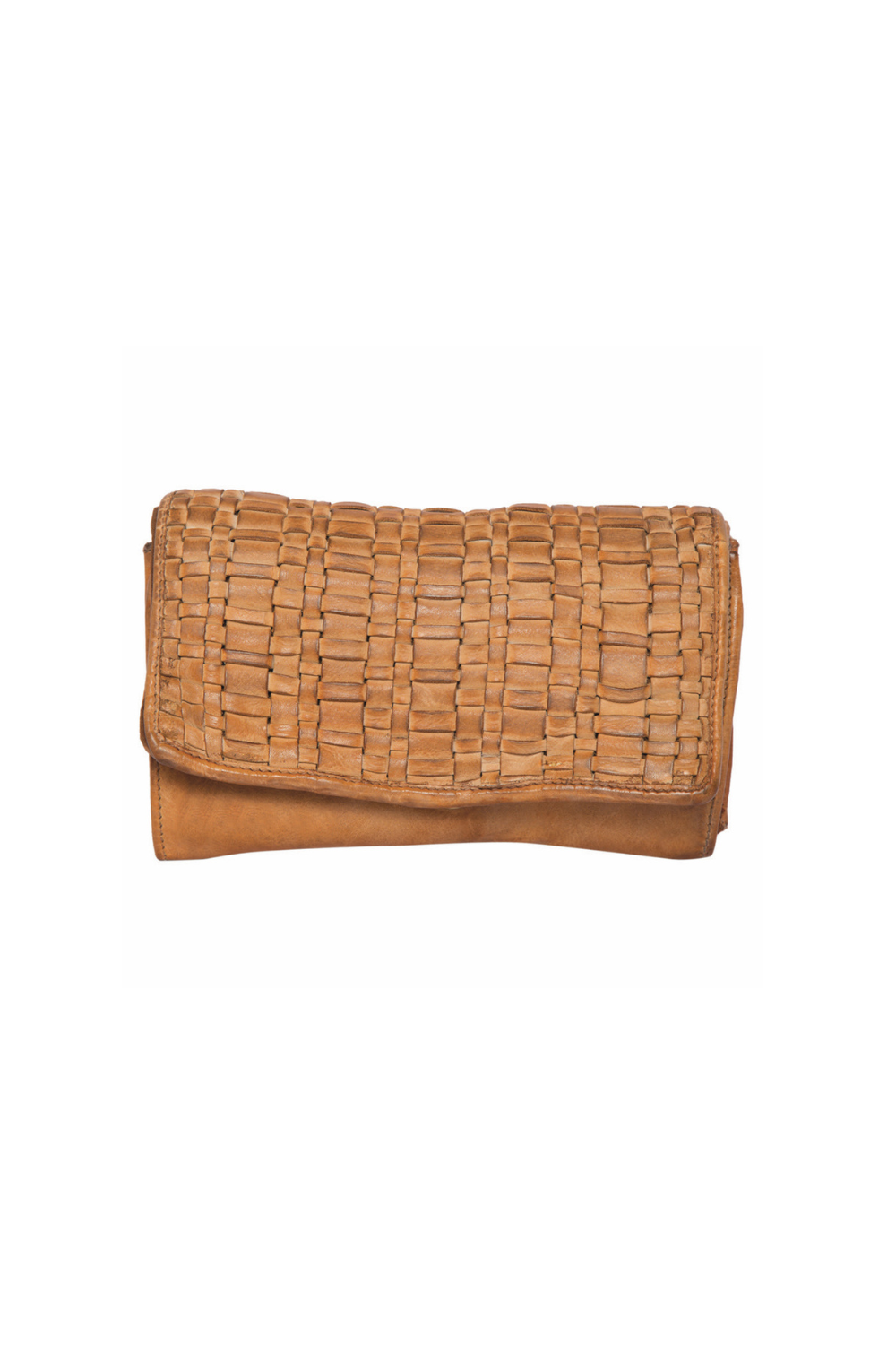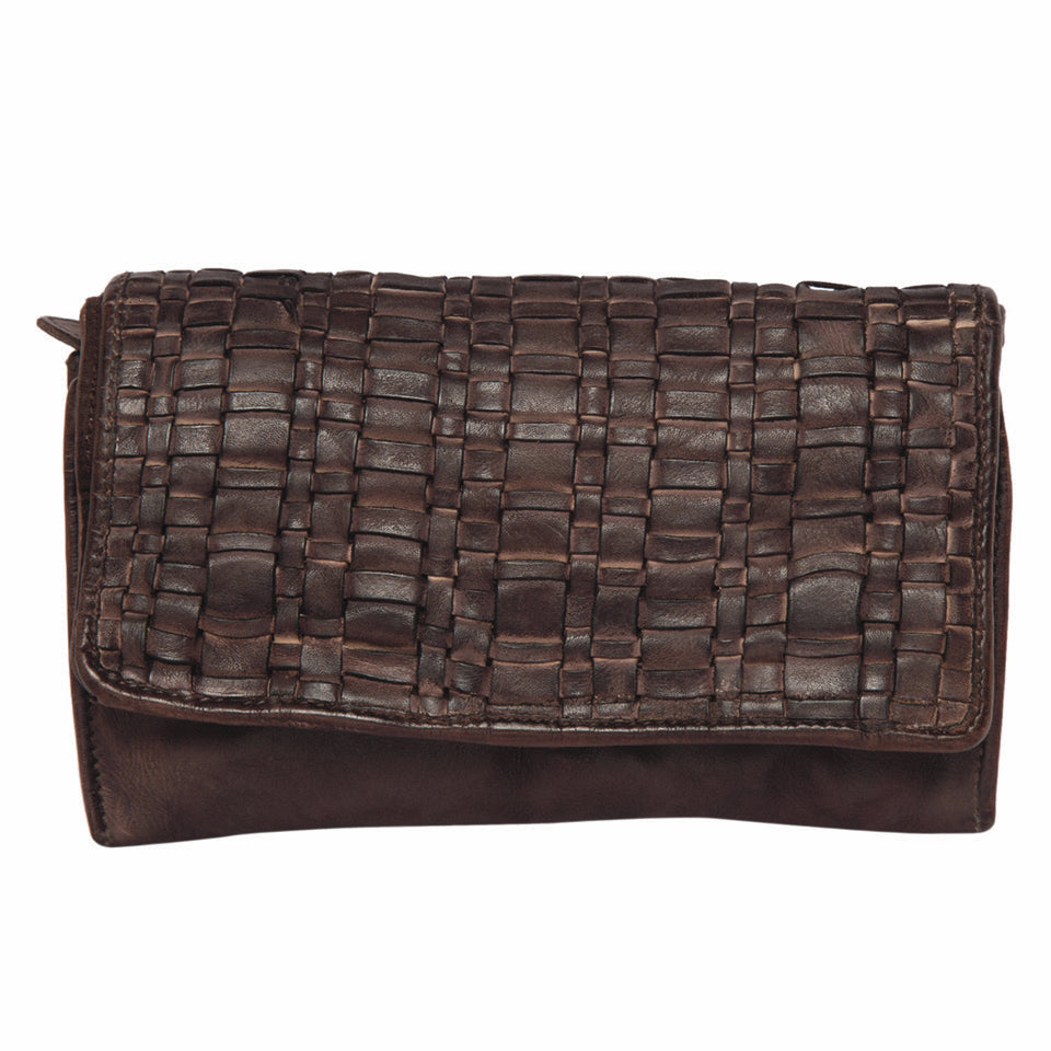 Woven Washed Leather Flap Wallet