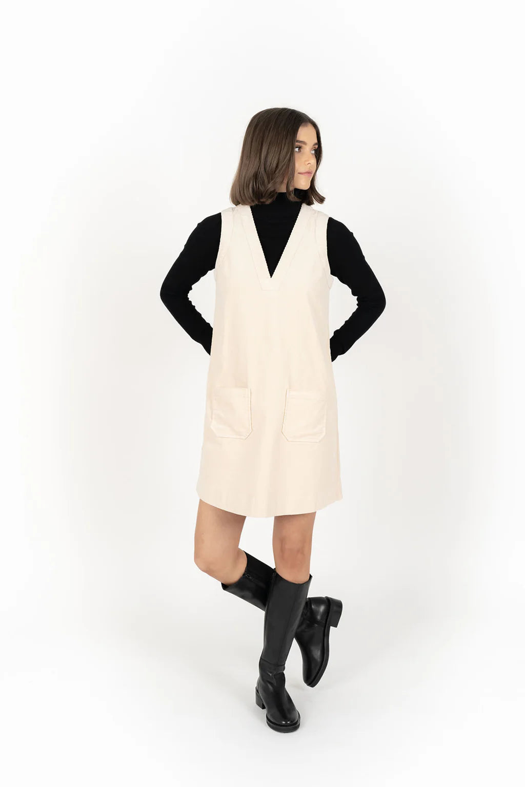A classic shape that’s been revamped into a stylish corduroy version. This cute little shift dress is super comfy and carries the perfect amount of stretch. A great transeasonal piece you will wear over and over! Team with our Alana Skivvy and add a pair of stockings on chilly days for an extra layer of warmth.