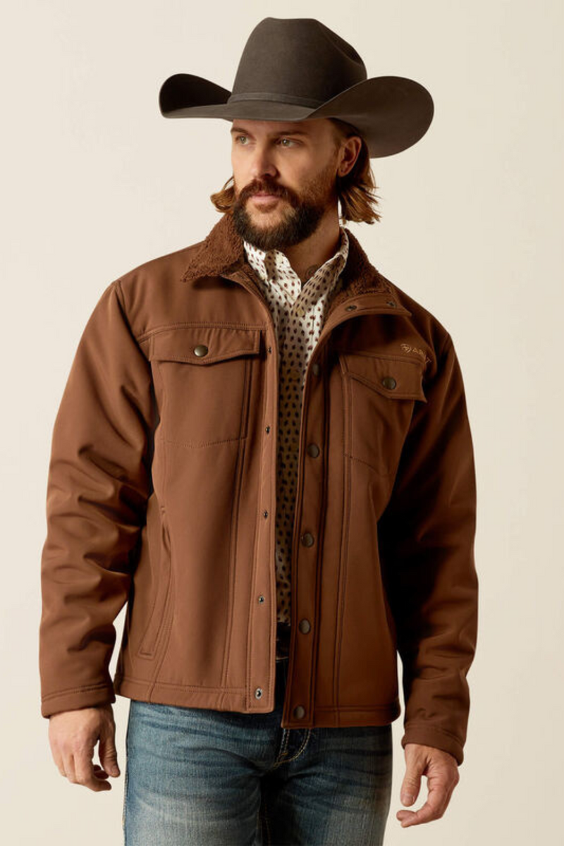 The look of a classic trucker jacket meets the performance of a softshell. With a cozy, sherpa-lined collar, it wards off wind, rain, and cold without weighing you down or slowing you down.