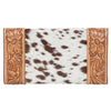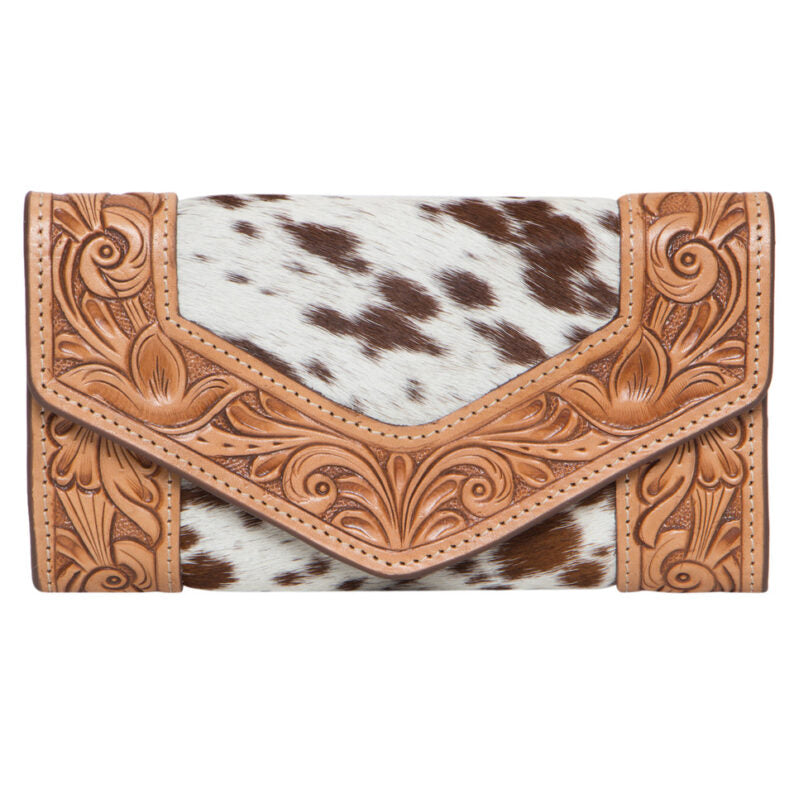 This is a practical yet very chic and graceful design. This trifold wallet is majestic, functional and realistic all at the same time. It features hand tooling details along with magnetic button closure, credit card slots, cash compartments and a window card slot for your driver’s license or photos, making it the complete everyday wallet.