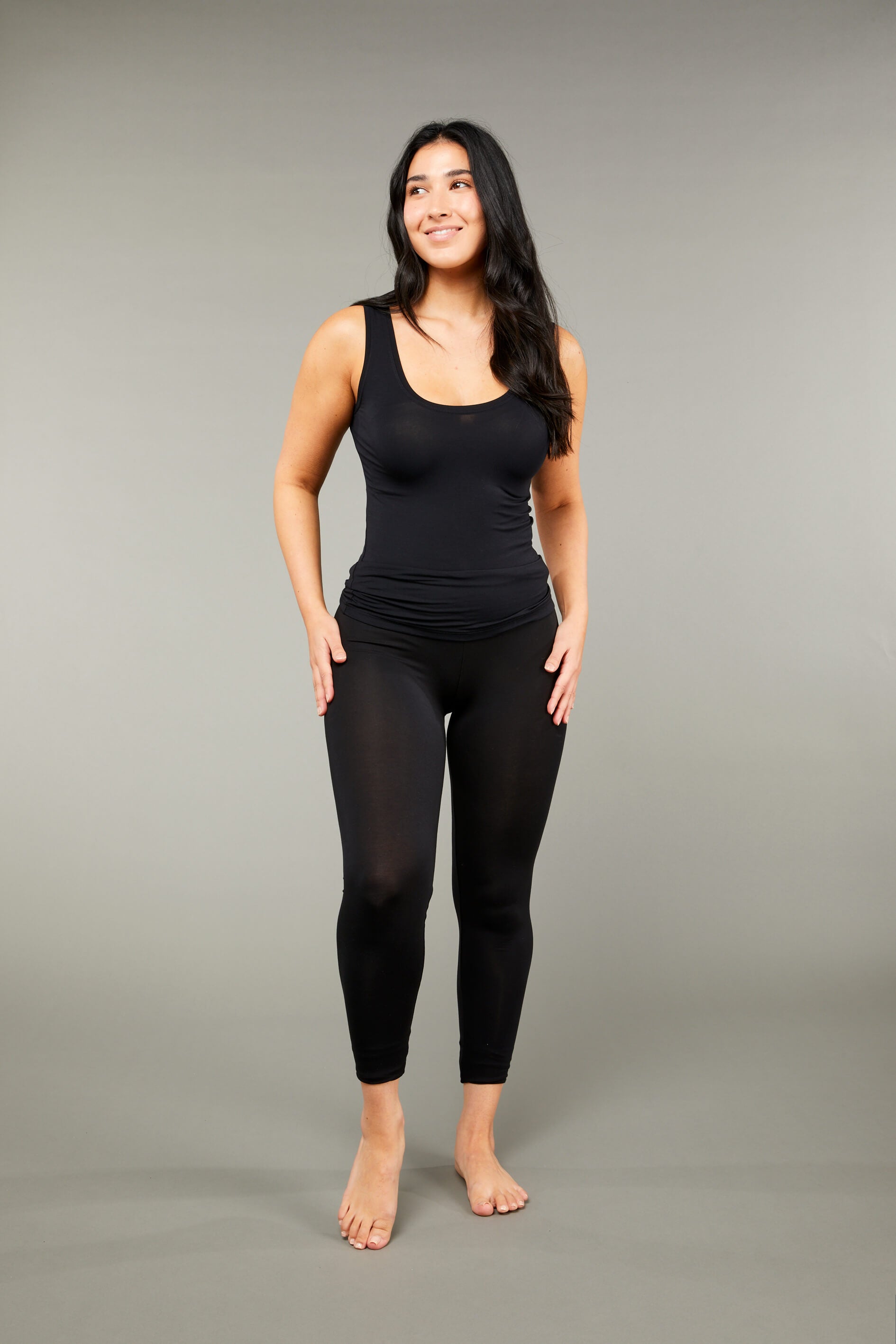 This 7/8 legging is a shorter version of our classic full length legging. It has a lightweight, second-skin fit that is so comfortable that it feels like you're wearing nothing at all. This piece can be worn on its own or used by many as a layering piece.