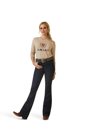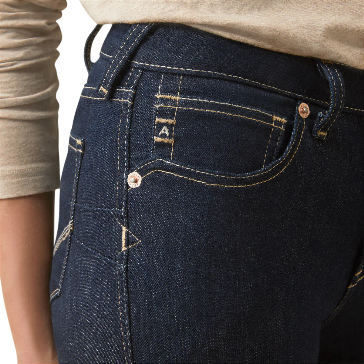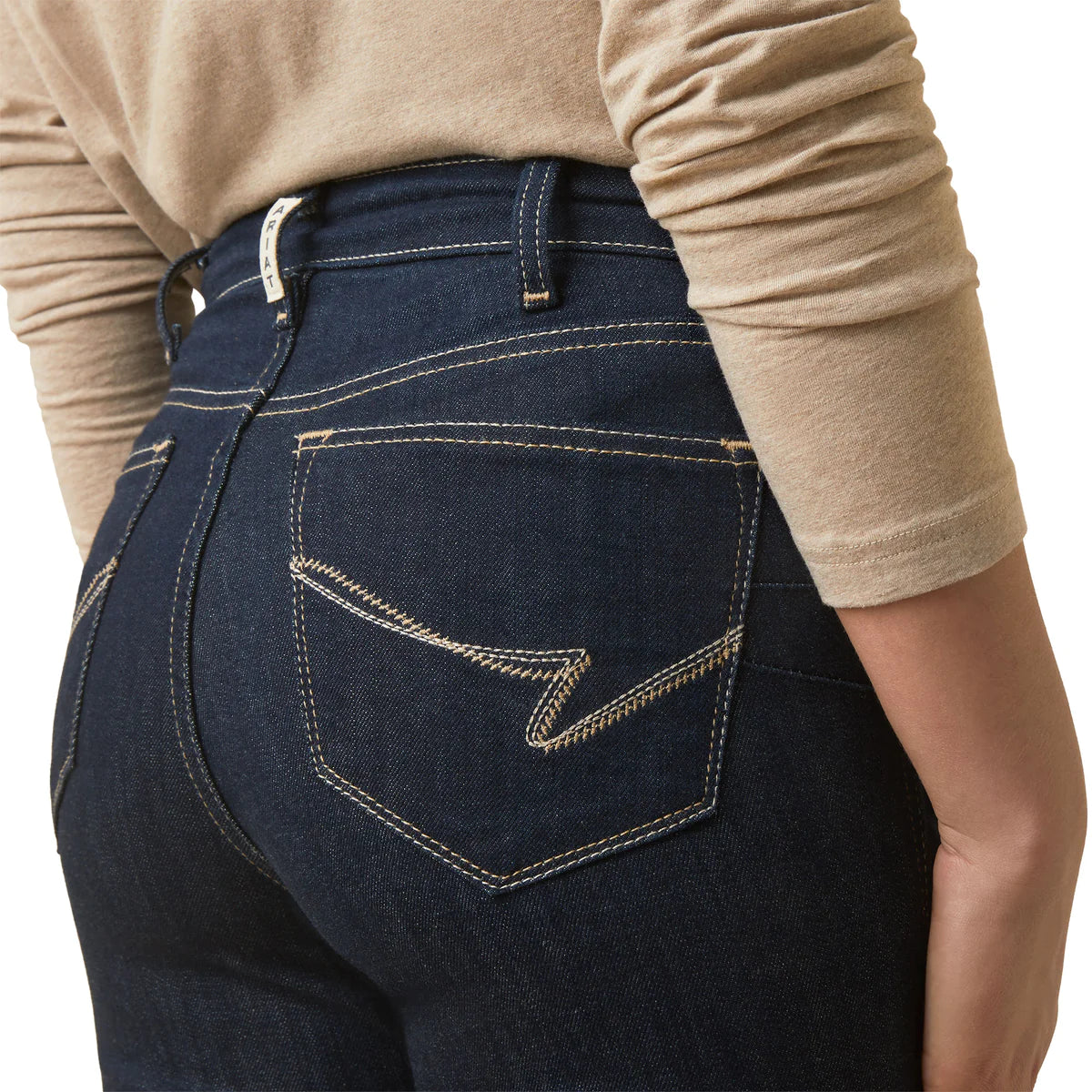 The versatile dark wash and subtly stitched back pocket are the stars of this jean. With its trendy high rise and clean silhouette, it's a cowgirl fave in and out of the saddle.