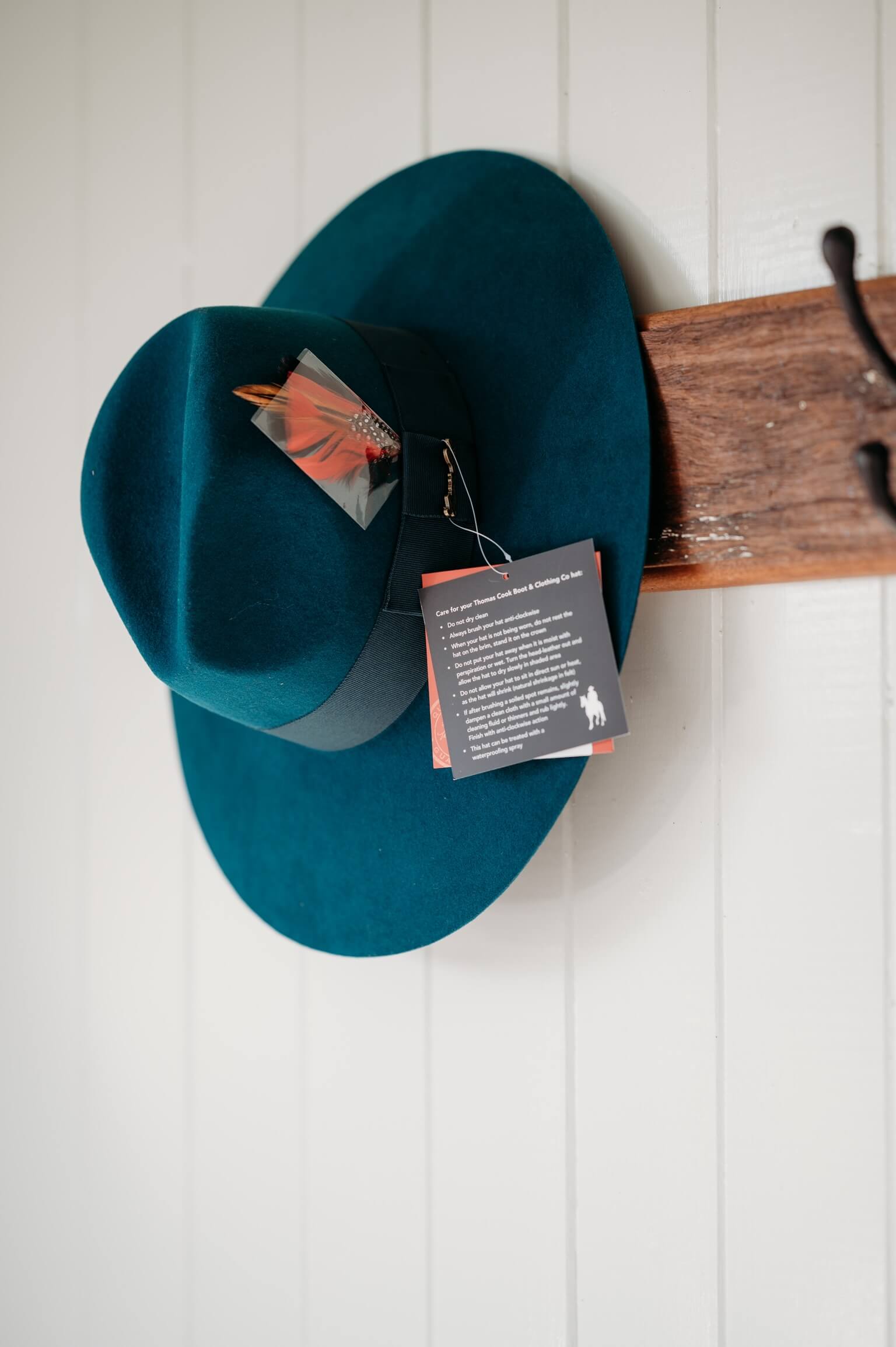 Features: Tonal gross grain tape with detachable feather, Thomas cook metal logo pin, cotton sweatband, shower proof, can be crushed