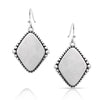 Start every day with the Blank Slate Earrings. These earrings feature an ethereal White Buffalo stone. The diamond shaped stone is enclosed in a silver tone beaded border. These simple earrings are perfect for any outfit. These earrings are secured by hypoallergenic French wires.