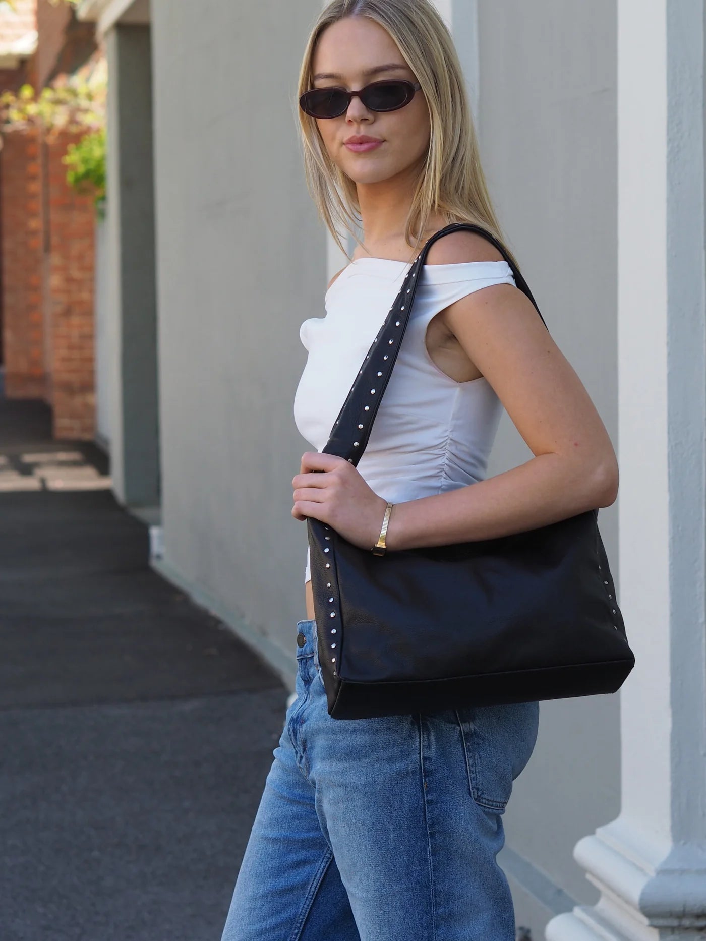 • Spacious main compartment with an internal zip pocket and two open pockets for phone, keys, etc.