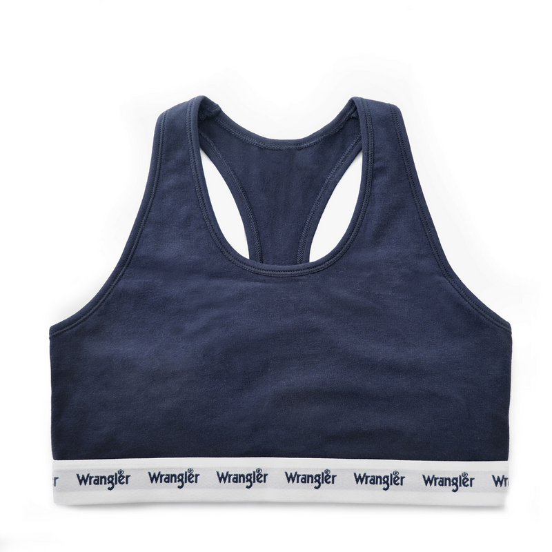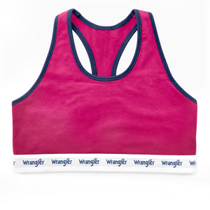Features: Wrangler iconic logo elastic, scoop neck with racer back shaping, soft hand feel fabric