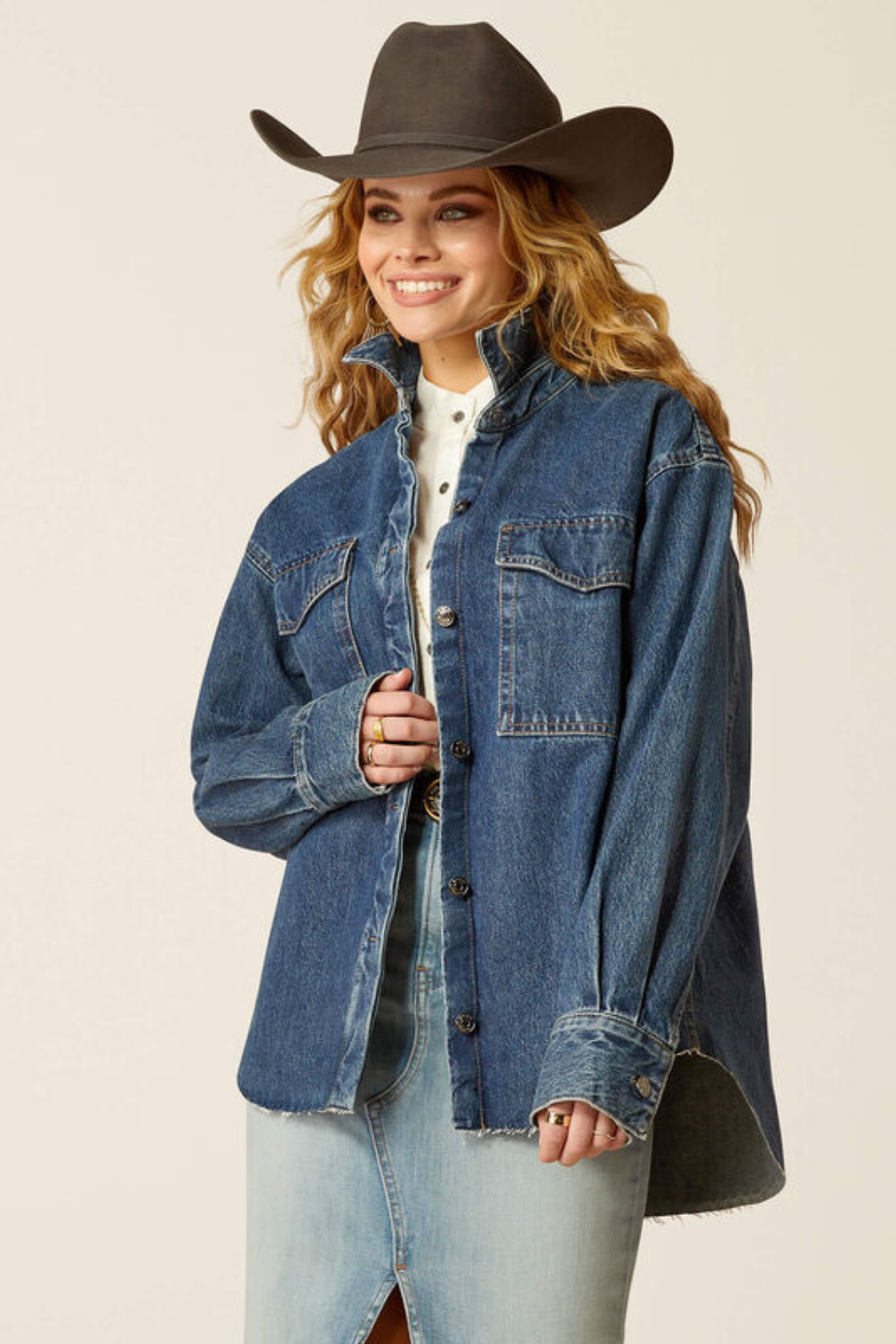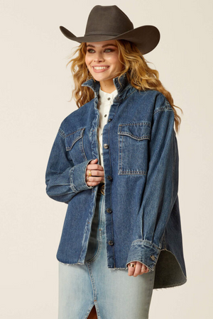 Coolly oversized with roomy chest pockets and a raw-edge hem, this shirt jacket adds instant style to any look. It's so versatile, you'll wonder how you ever got dressed without it.