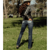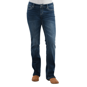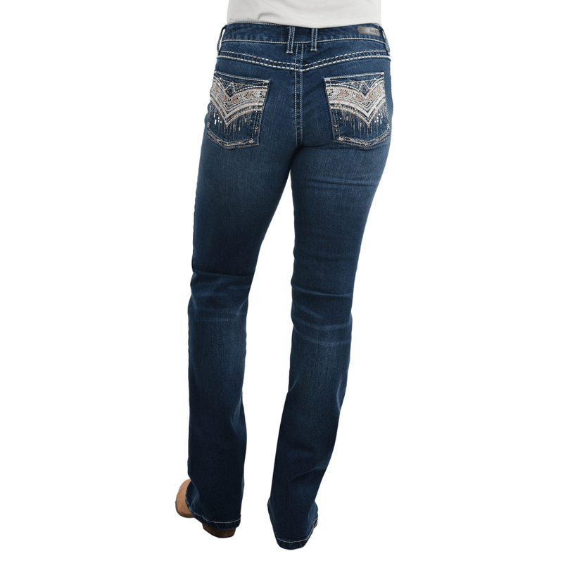 Features: Boot Cut - 34 Inch leg, five pocket styling, back pockets with feature embroidery & embellishments, all over feature stitching, logo rivets at stress points, new improved fit