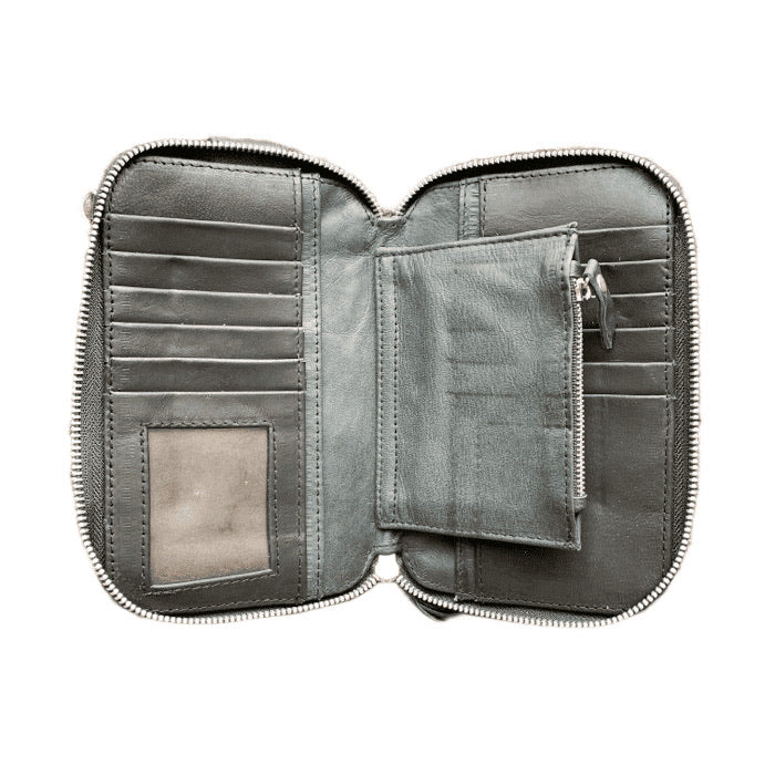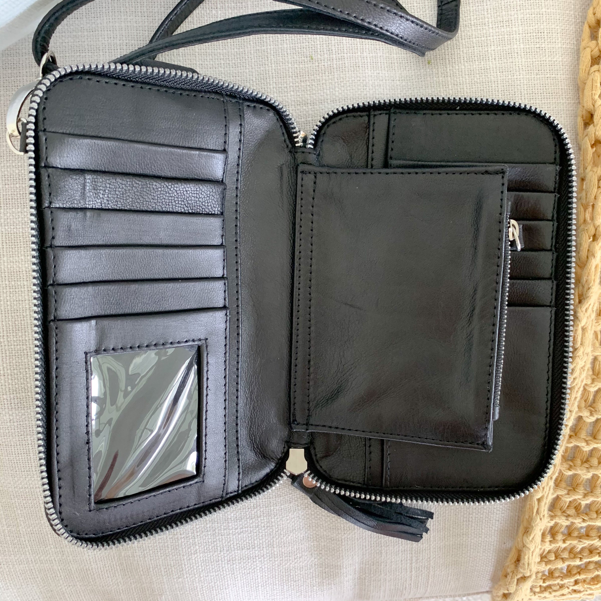 • 1 Photo ID Window 11 Credit Card Slots 4 Note Sections Zip Pocket Phone pocket