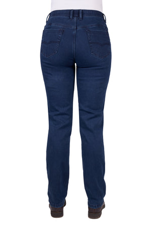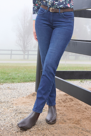 Slim straight leg, underside of fabric with brushing for warm thermal qualities, breathable, stretch for comfort and movement, no gap elastic waistband, double stitched for strength, Thomas Cook mock leather badge, horseman embroidery on front pocket.