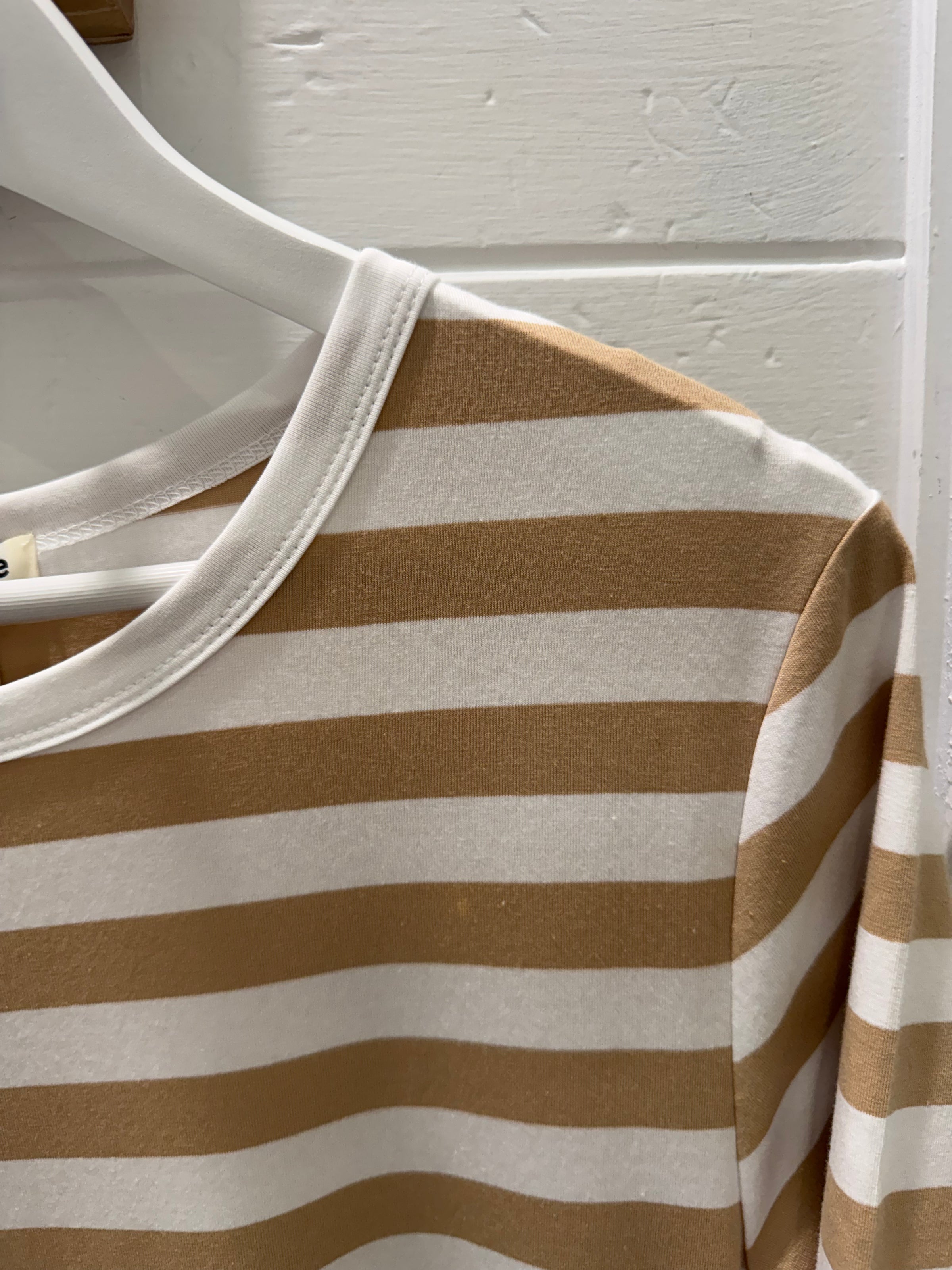 Indulge in effortless elegance with the Kate Stripe Dress. Perfect for any occasion, this essential cotton piece features a midi length, rounded neckline, and convenient pockets. Its classic stripe pattern adds a touch of sophistication to your wardrobe. Elevate your style with this must-have dress.