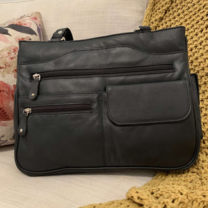 Soft Leather Top Zip Three Compartment Shoulder Bag