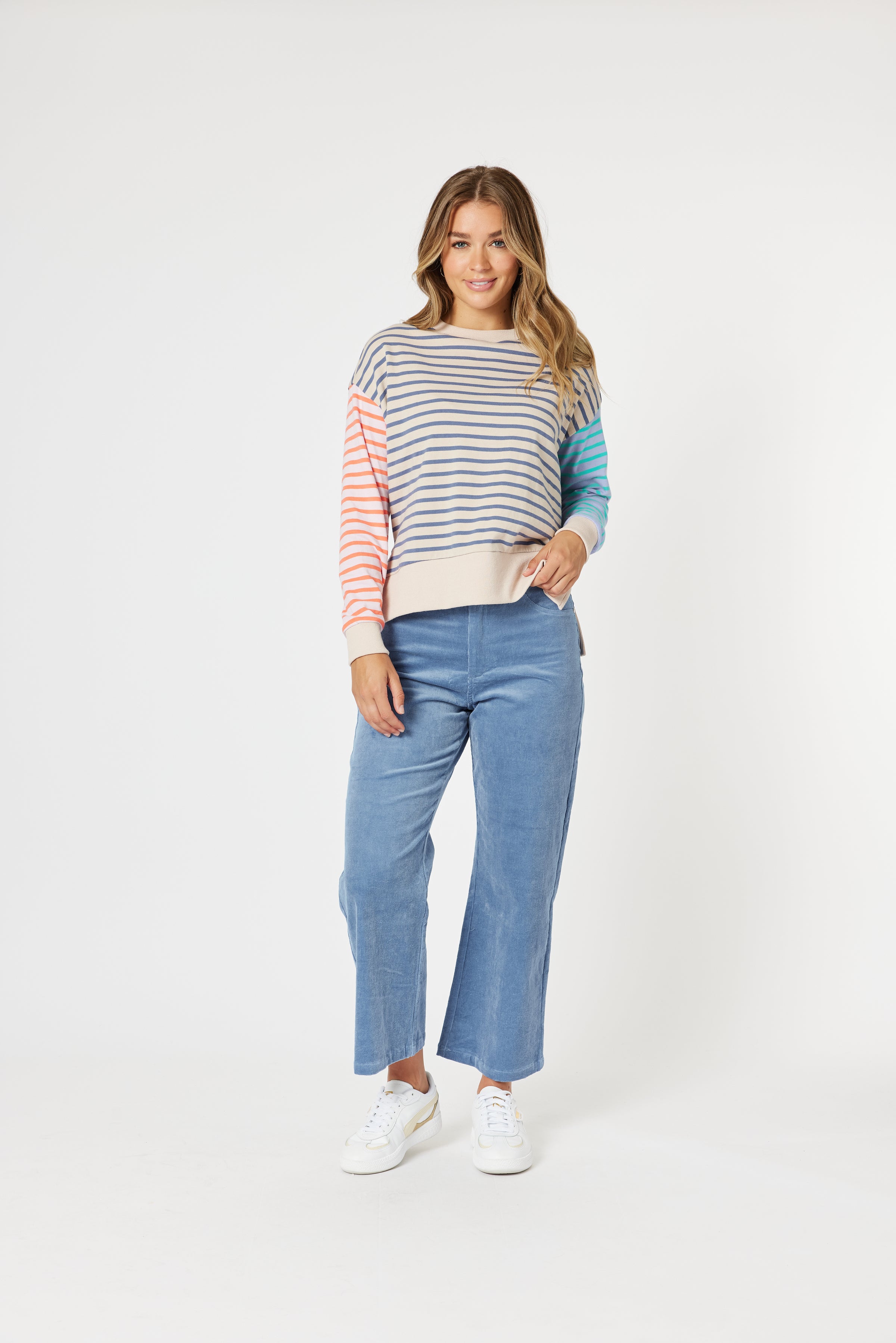 Get ready to lounge in style with our Lucy Stretch Cord Pant in Blue. These high-waisted cord pants are not only comfy but also add a touch of chic to your outfit. Perfect for a day of relaxation or running errands, these pants have got you covered (literally!).