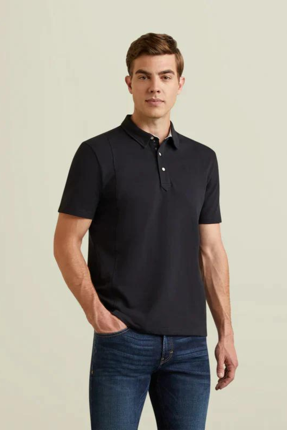 Winning style cut from soft, flexible cotton stretch fabric. This fresh take on the classic riding polo wicks away moisture and provides odor resistance. Polished design accents include grosgrain detailing on the inner button placket and inside the collar.