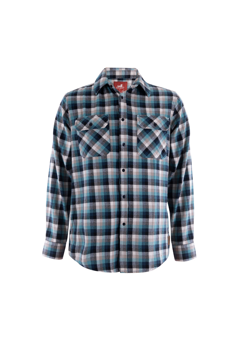 Premium yarn dyed check with thermal quality brushing, countryman pockets with pen holder, long shirt tail, back pleat for comfort and movement, removable collar stays.