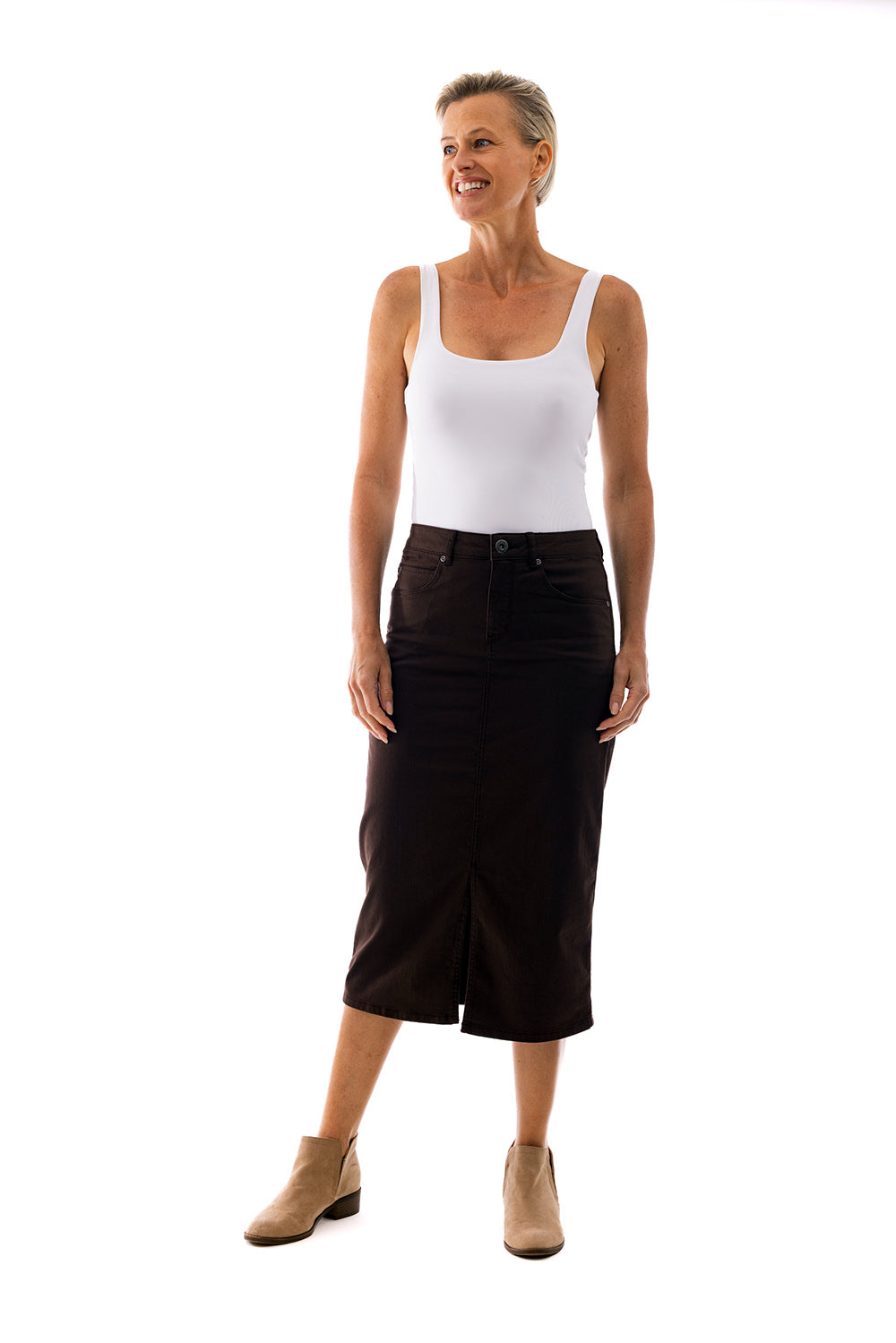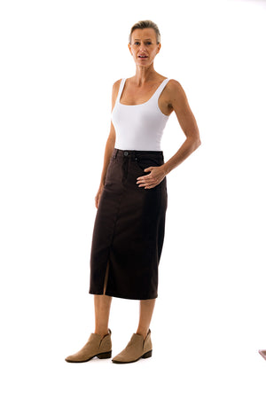 Midi Jean Skirt- Chocolate