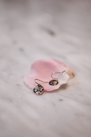 A classic silver accessory for any woman. These antiqued silver finished concho pendant earrings are a true classic. Featuring a traditional bright-cut engraved floral design filled with detailed flourishes filling the circular pendant. Hand-antiquing defines the bright-cut engraving. Earring conchos dangle on hypoallergenic stainless steel French wires.