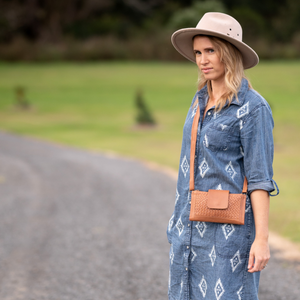 The Prato is the ultimate go-to multi functional wallet as it works equally as well as a clutch or shoulder bag; a versatile must for every women’s wardrobe! A hand woven front is offset with plain panel detailing and fastens with a tab and metallic snaps and there is a slit pocket across the back. Open the wallet up and the leather strap is easily clipped on and off as desired . Internally there are so many storage options- there are two zip pockets, 14 card slots, one of which has a clear panel, and 4 note sections. An inbuilt mirror is even included for those midday/evening touch ups. All of this is constructed in our soft and buttery leather and is lined in Cadelle’s signature leopard print lining. Your purchase also comes with a complimentary satin printed dust bag.