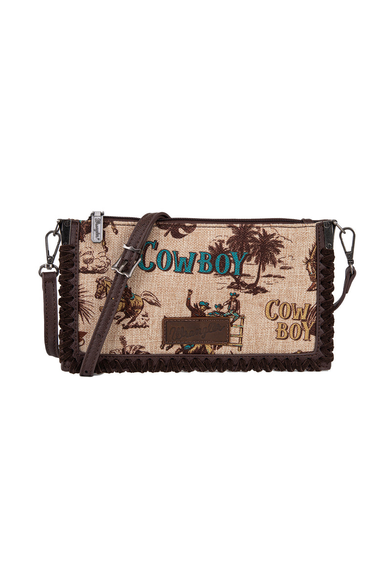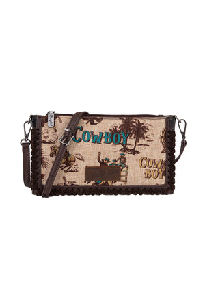 Introducing our versatile Printed Crossbody Clutch Bag, the perfect combination of style and functionality! This cowgirl-inspired clutch features a bold canvas print and can be used as both a wallet and a cross body bag. Stay organised and make a statement with this fun accessory!