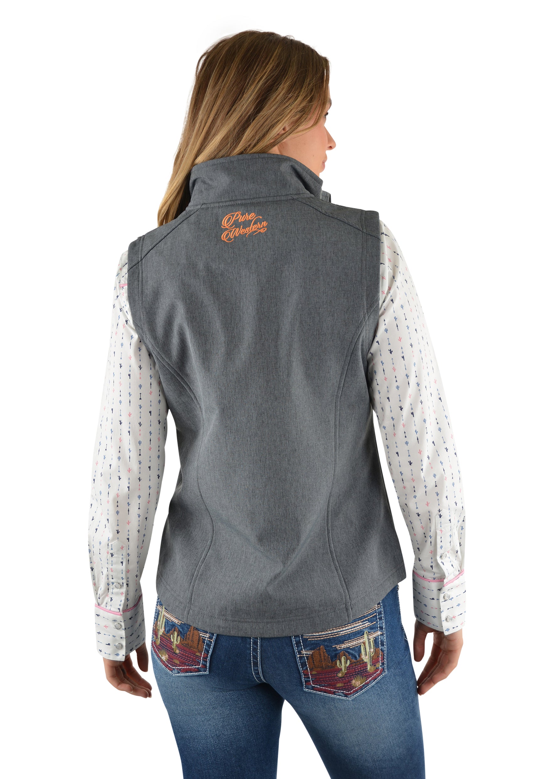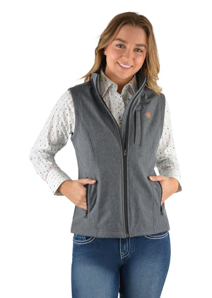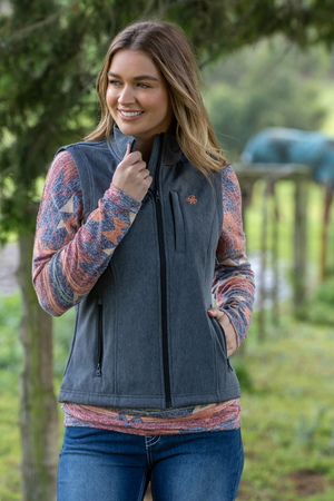 Features: Textured marle vest with bonded Aztec print polar fleece lining, waterproof softshell fabric, weather resistant rating 6000, logo tape trim on inside neck logo, embroidery on chest and back neck, side zip pockets, chest welt pocket with zip, centre front zip fastening, velcro tab on cuff to adjust fit, front and back splice detail, adjustable toggle and elastic in hem, longer back hem