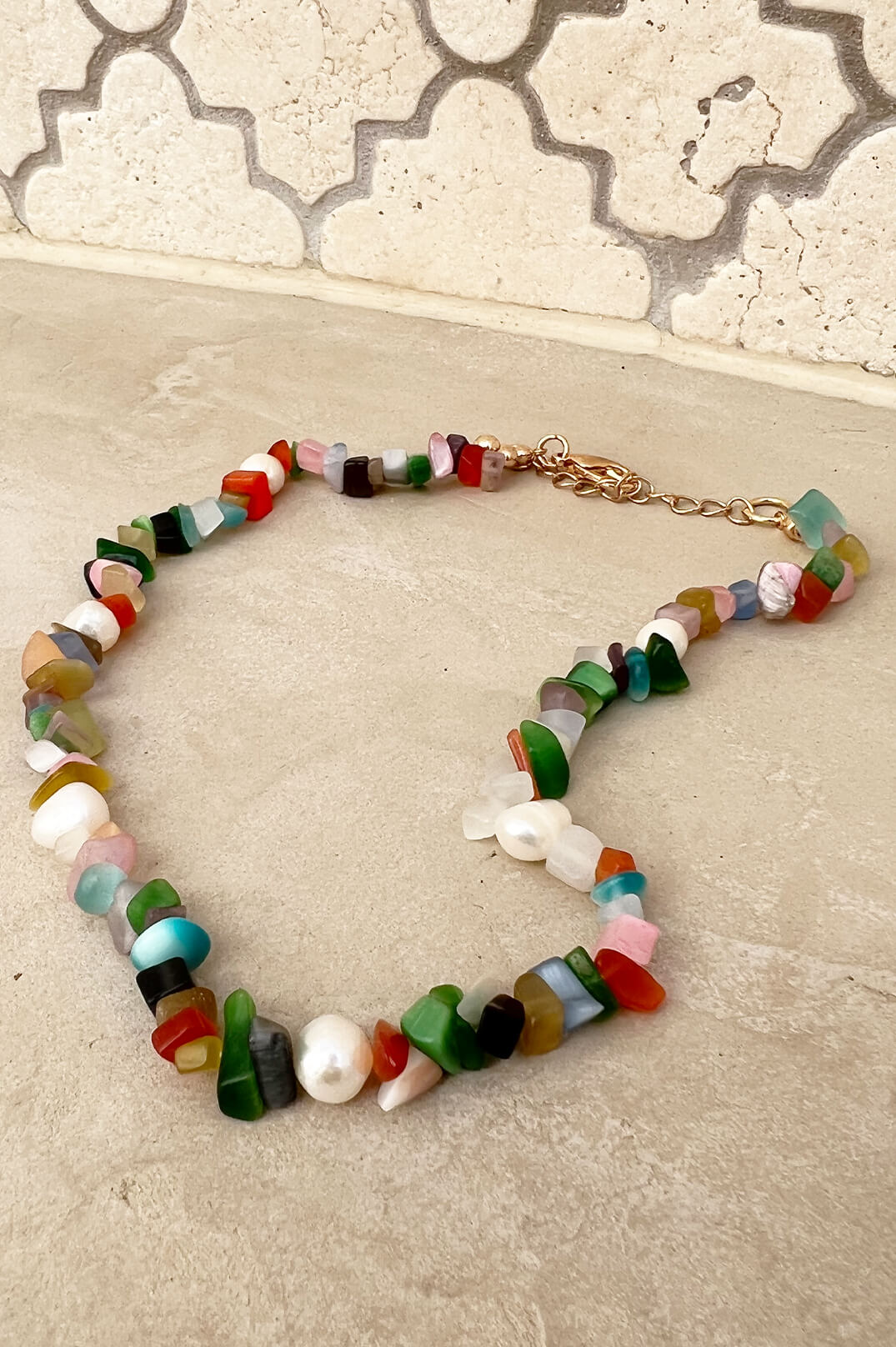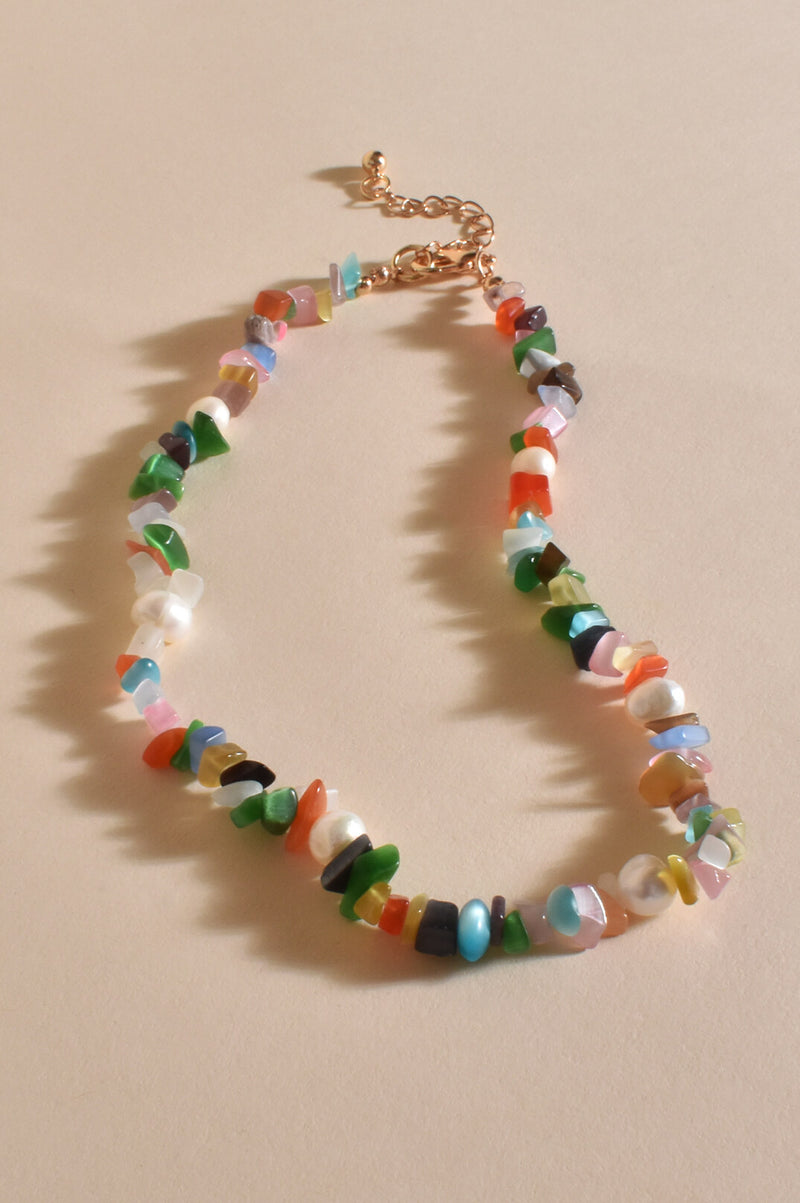 Stone Chips Pearl Short Necklace