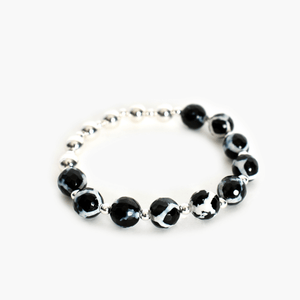 • Black and white stone and silver beads