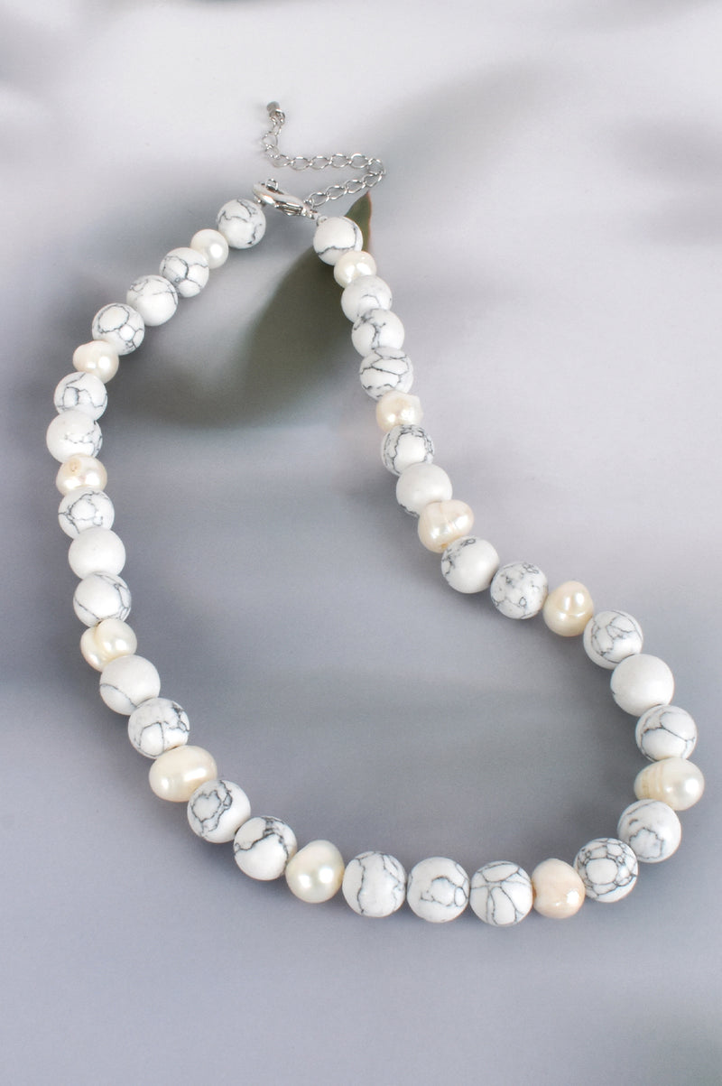 • Embrace the warmer months in crisp white accents with the addition of our Stone Pearl Mix Short Necklace, layer it up with our Double Layered Stone Drop Necklace for maximum impact!