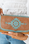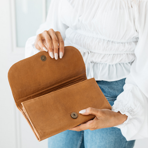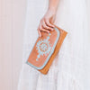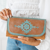 This large modern Tahitian clutch is for the organised woman with a range of compartments to fit cards, notes and coins!