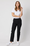 Elevate your everyday wardrobe with our Threadz Basics Full Length Pants. Crafted from a stretchy and flattering fabric, these ankle length pants provide style and comfort. Perfect for any occasion, these black pants are a staple for a sophisticated and luxurious look.