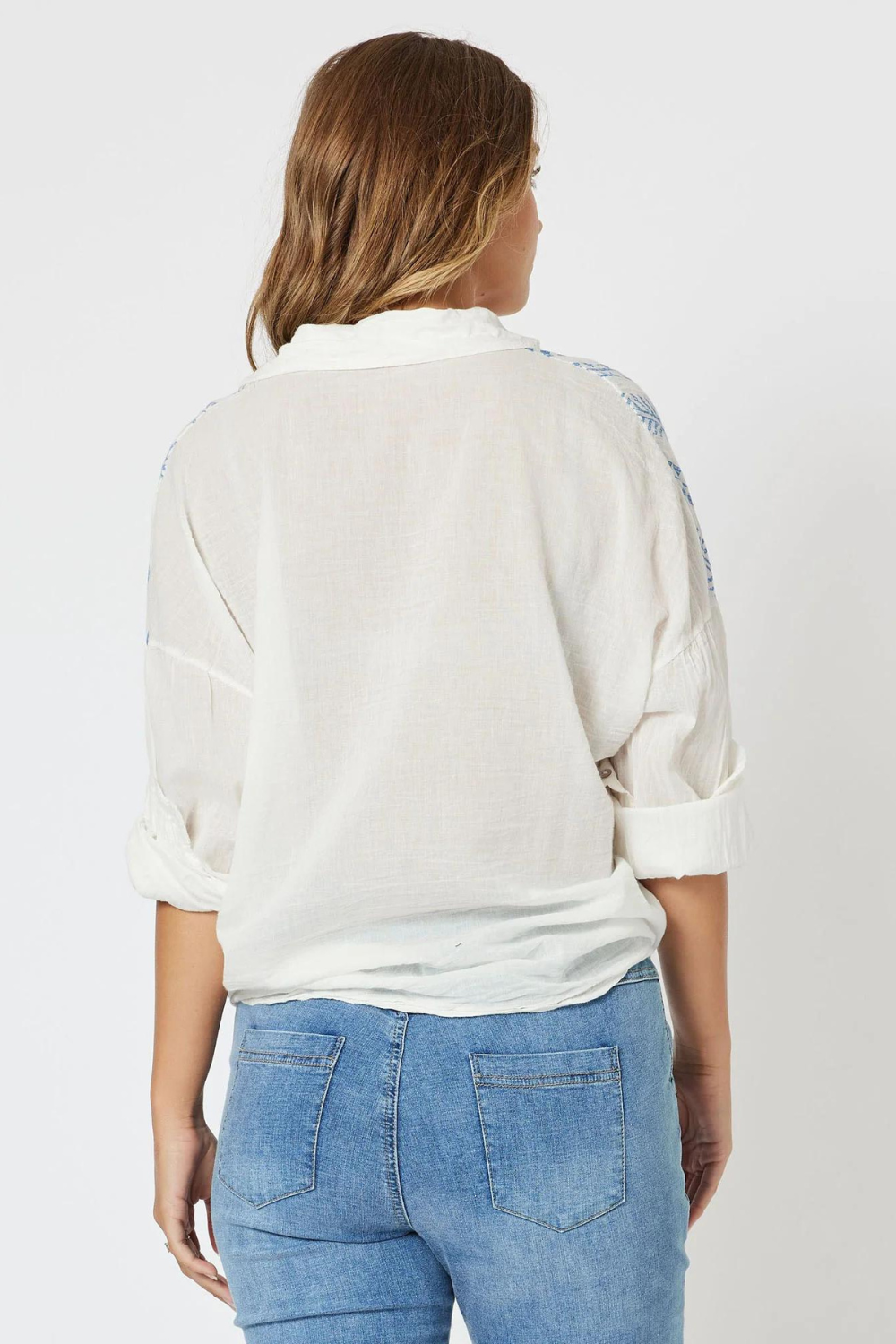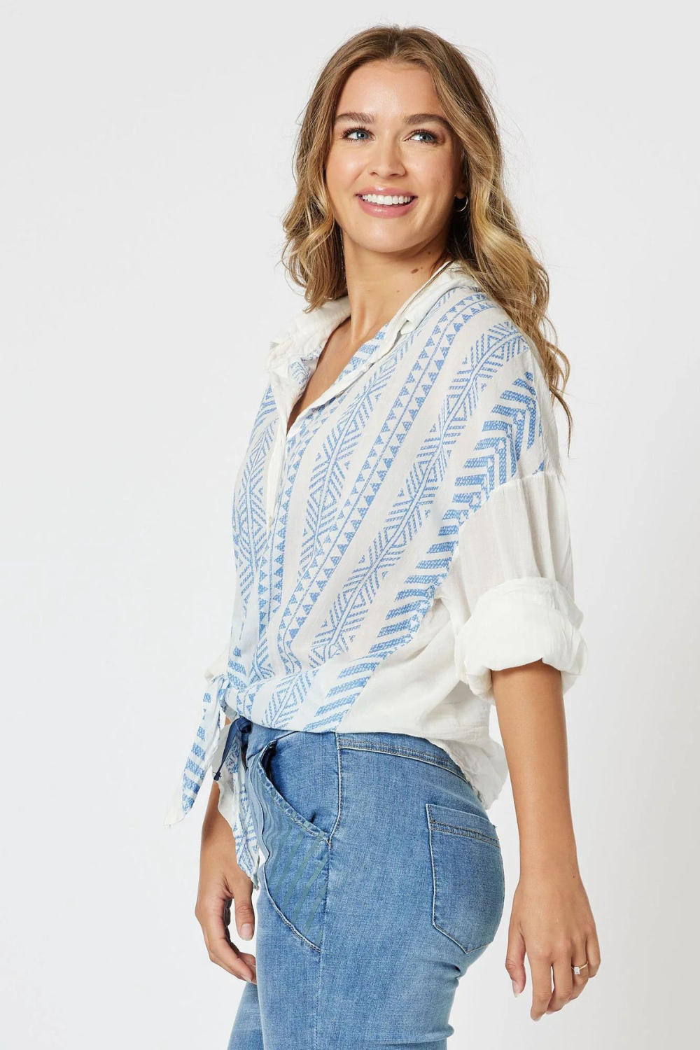 43714 - Ivy Cotton Print Tie Front Long Sleeve Shirt. Style open over swimmers for a pretty pool side look & with light denim or white for an effortless summer outfit.