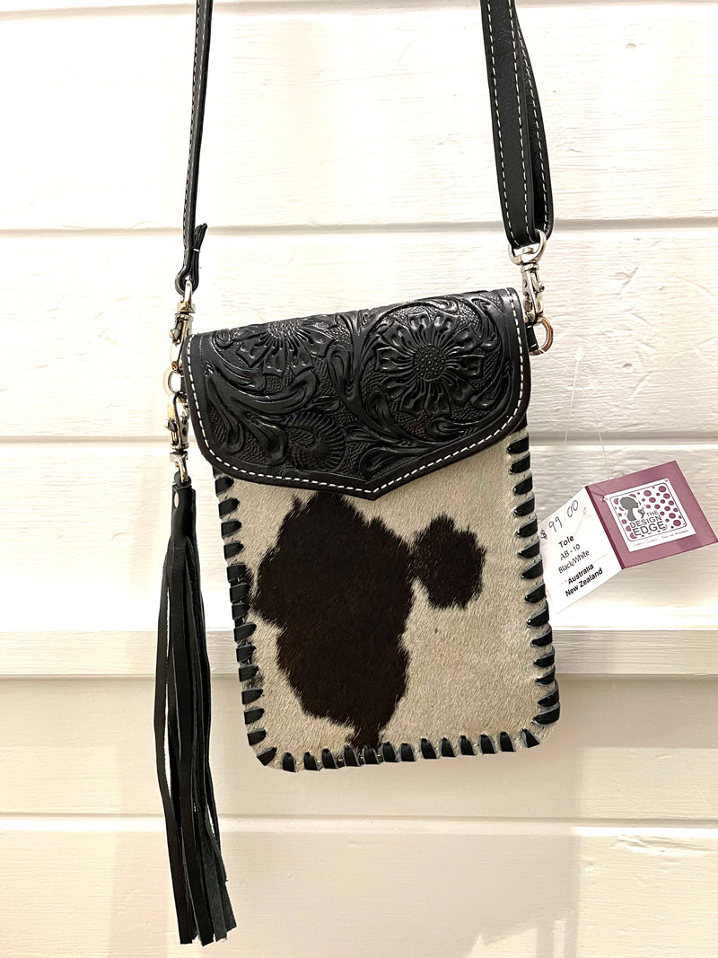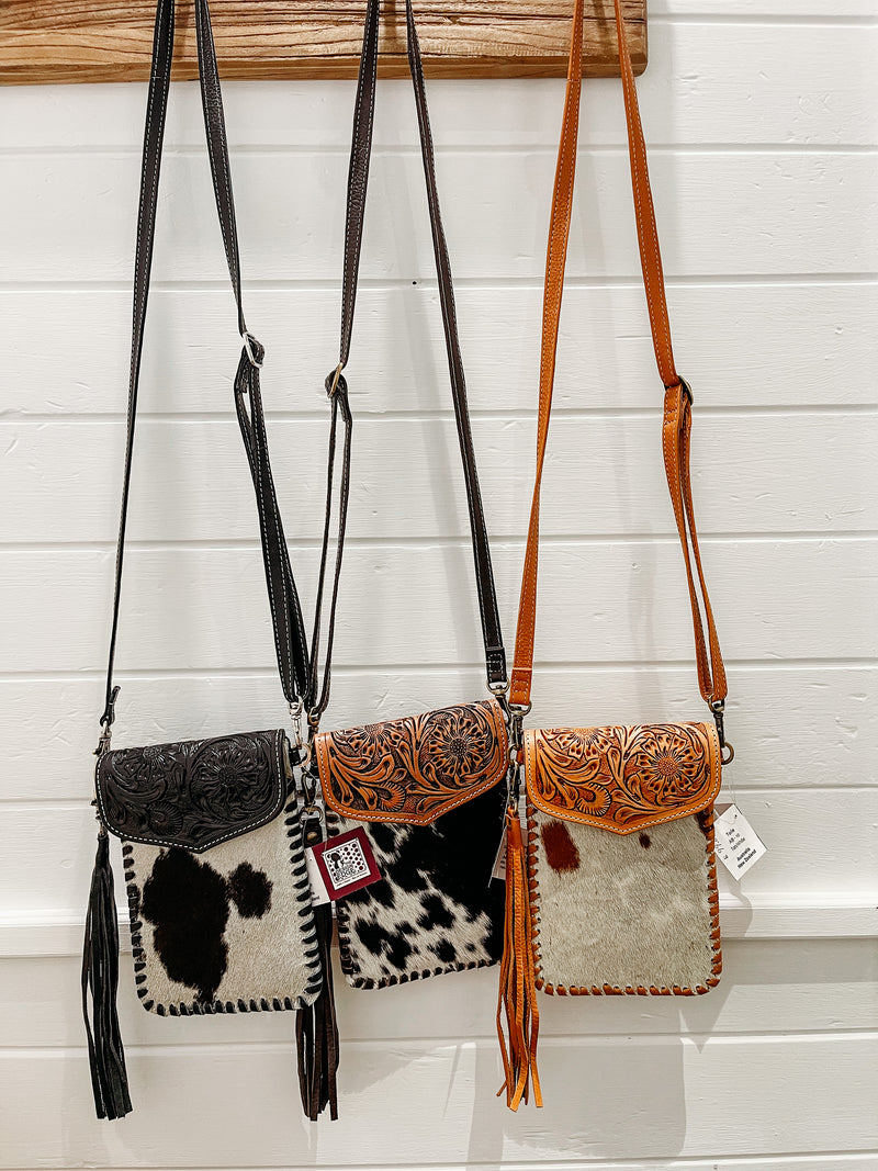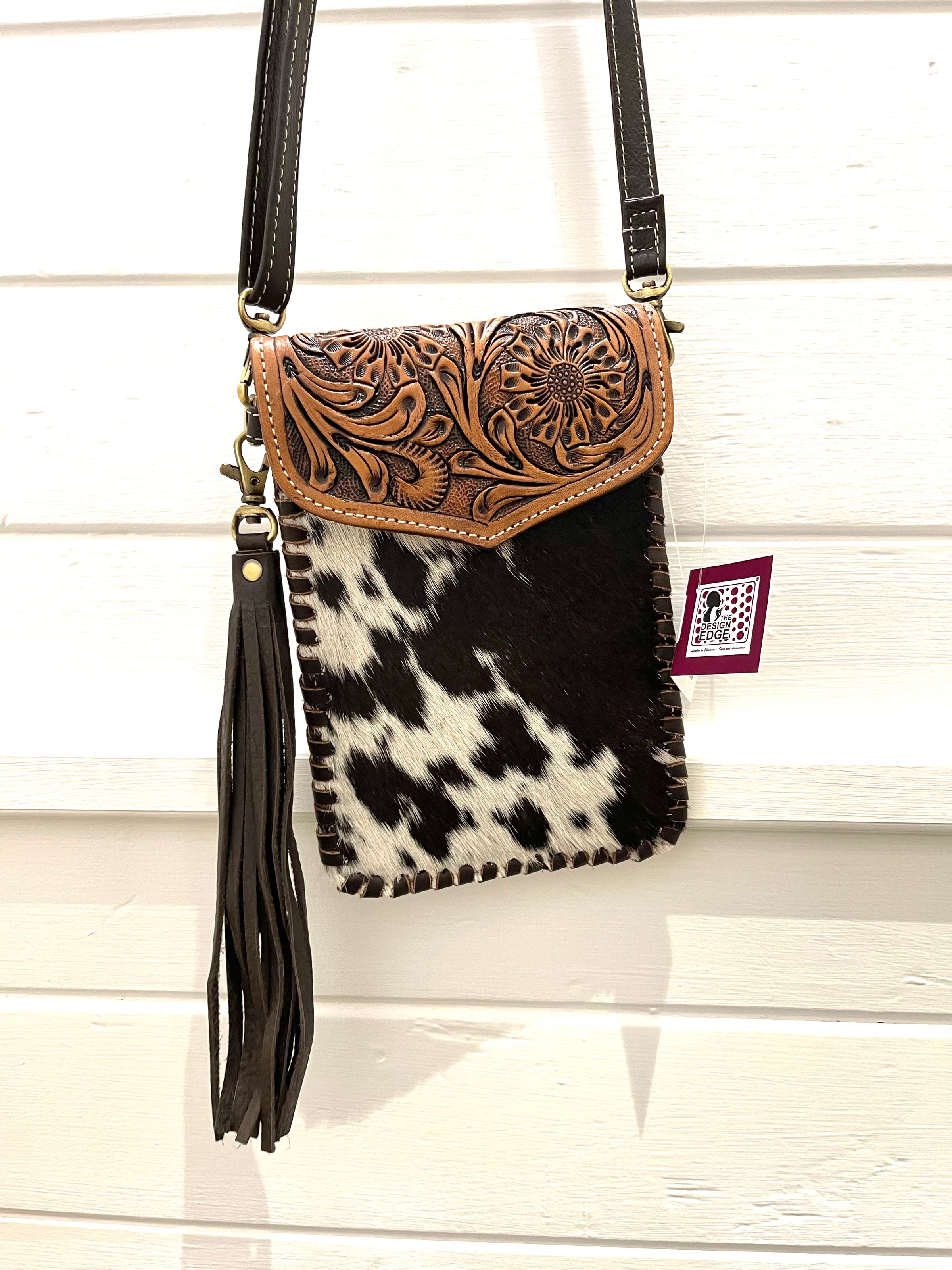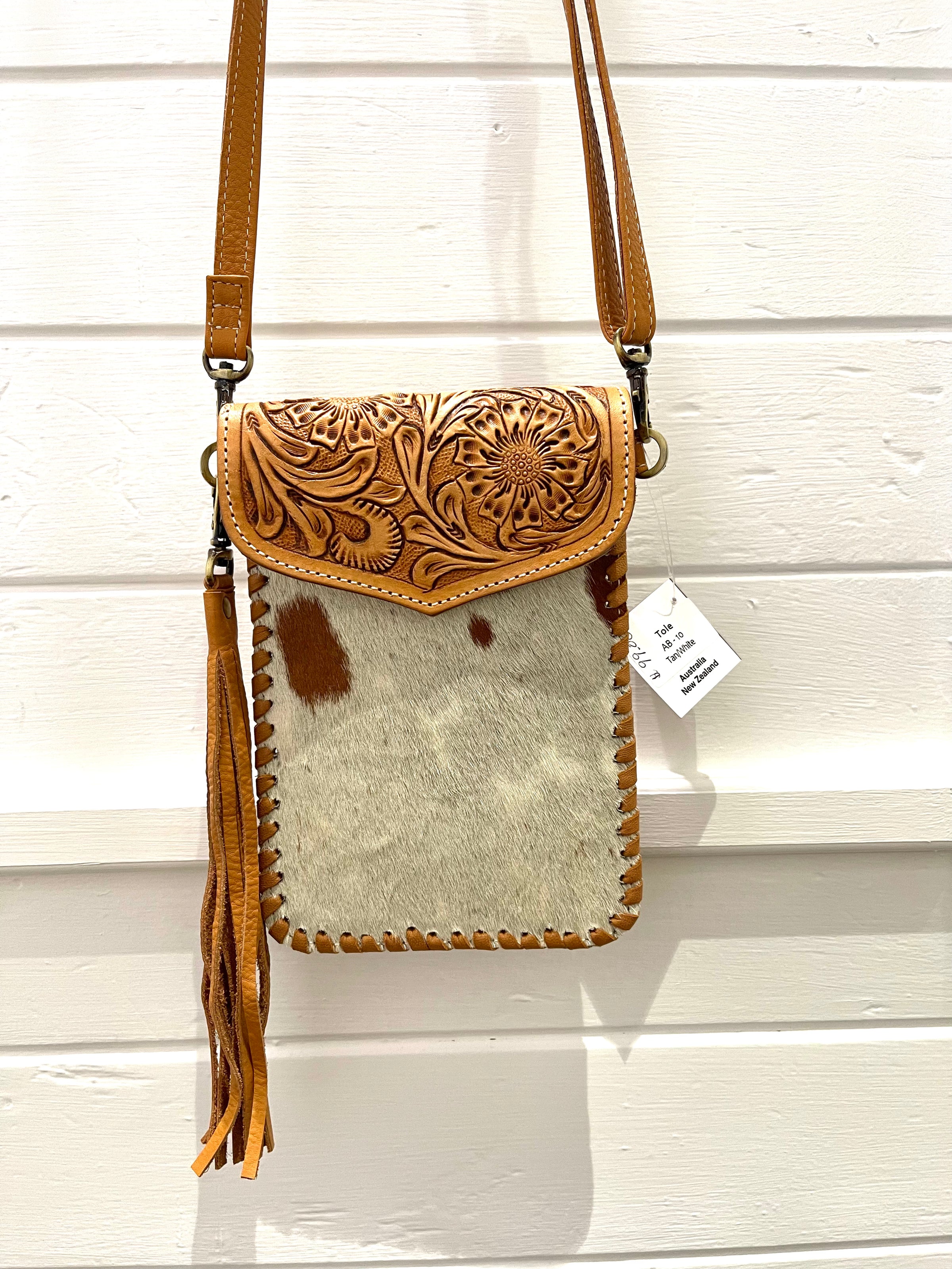 This impressive multifunctional Phone Bag is crafted from genuine premium cowhide and Tooling Leather. This bag has a vertical design with magnetic closure and interior card slots. This sleek style features enough room to fit any size mobile and a few essentials. This beauty finished off with stunning hand tooled details and hand weaving on sides, includes detachable and adjustable genuine leather shoulder strap plus detachable leather tassel.