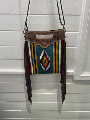Tooled Saddle Blanket Sling Bag
