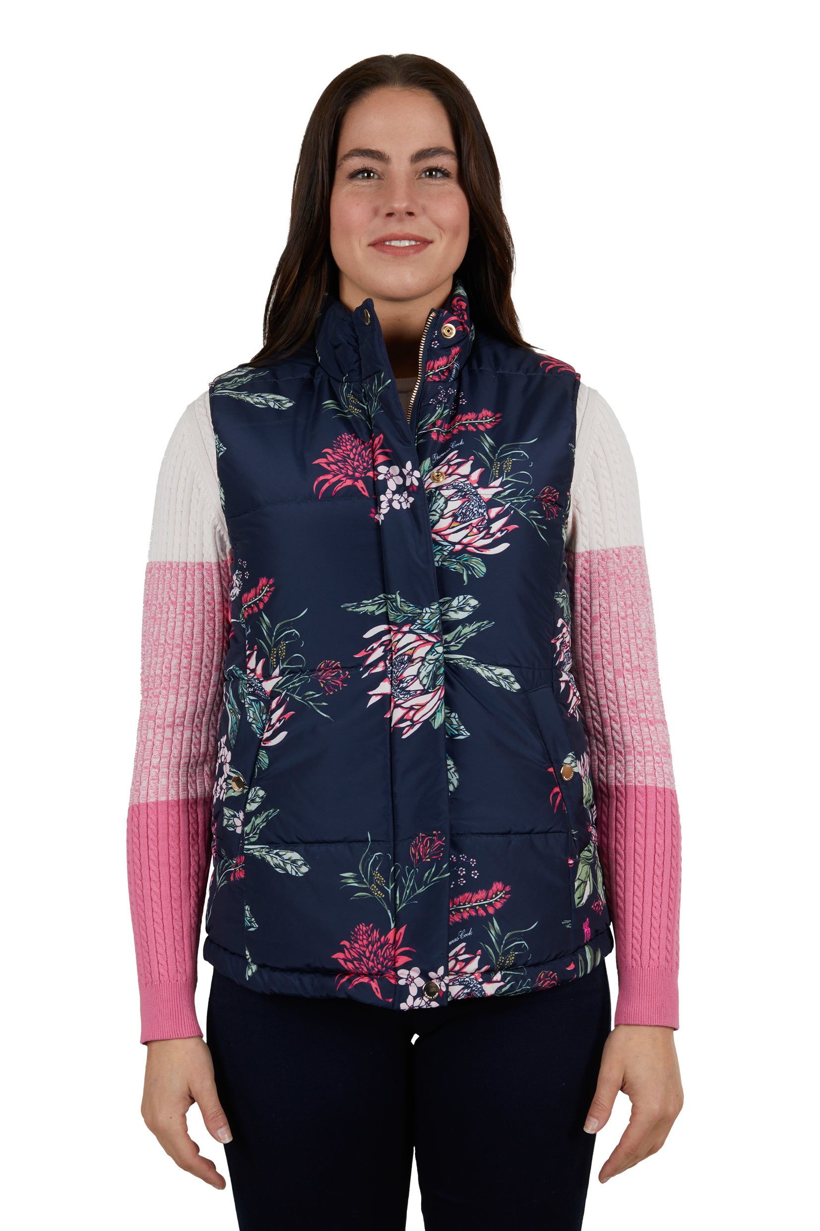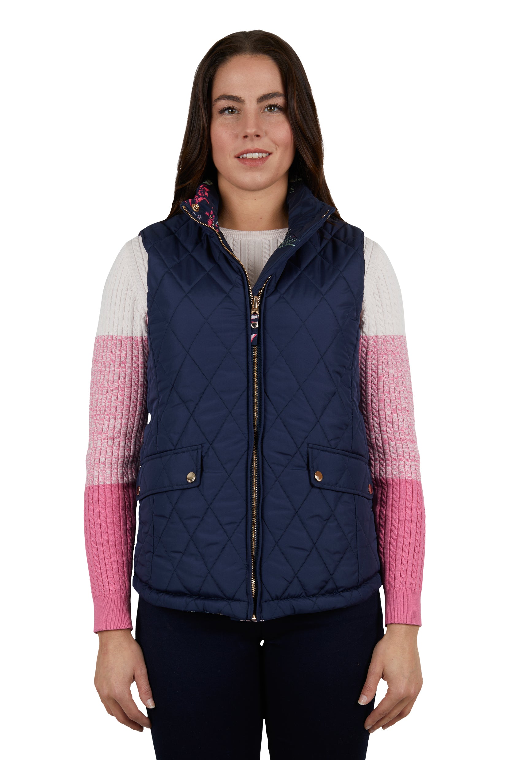 Unleash your adventurous spirit with the Women's Flora Reversible Vest! This versatile and stylish vest boasts a country-inspired design, complete with floral and navy patterns. With its reversible feature, you can easily switch up your look for any occasion. Plus, the convenient pockets and zipper make it perfect for any outdoor excursion. Take on the world and make a statement with the Flora Reversible Vest!