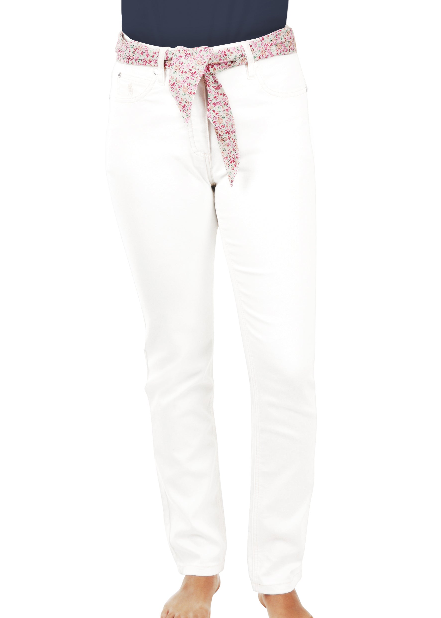 • Features: No gap elastic waistband, Wonder Jean slimmer leg fit slimming tummy tuck panel, contrast floral waist tie, rust proof silver metal accessories, YKK zipper, back pocket stitching design, horseman emblem at front pocket, stretch for comfort