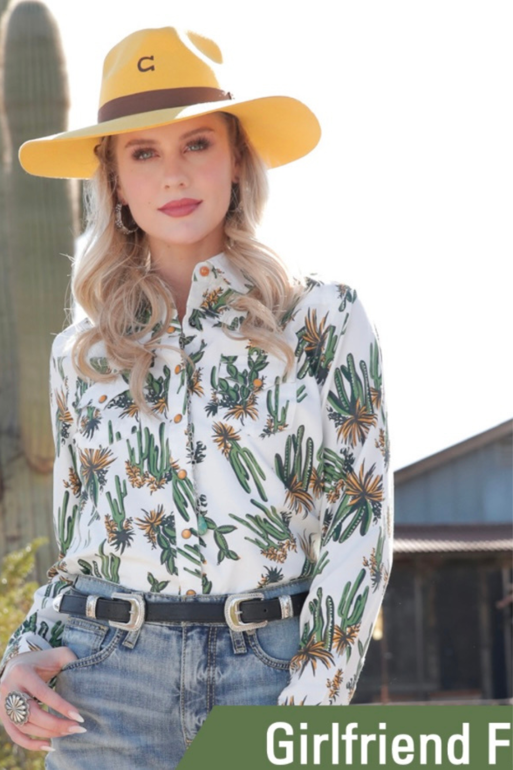 Yellow Pearl Snap Cactus Shirt
